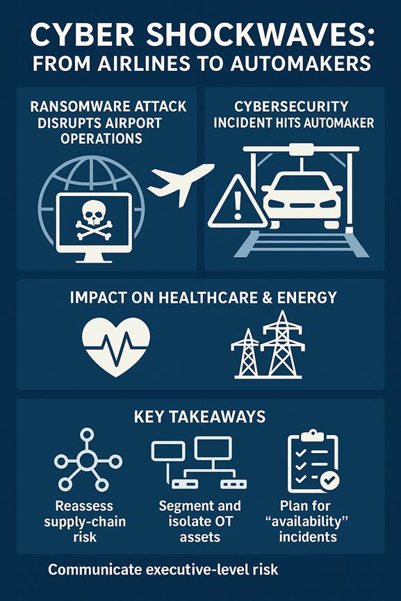 - The acceleration of digital/physical convergence means that cyber incidents can produce physical effects: grounded planes, halted assembly lines. That increases regulatory, financial, and reputational stakes dramatically.